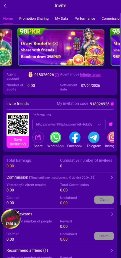 The referral program allows users to invite friends to join 98PKR Game. For every successful referral, both the inviter and friend earn rewards, boosting earnings quickly and easily.